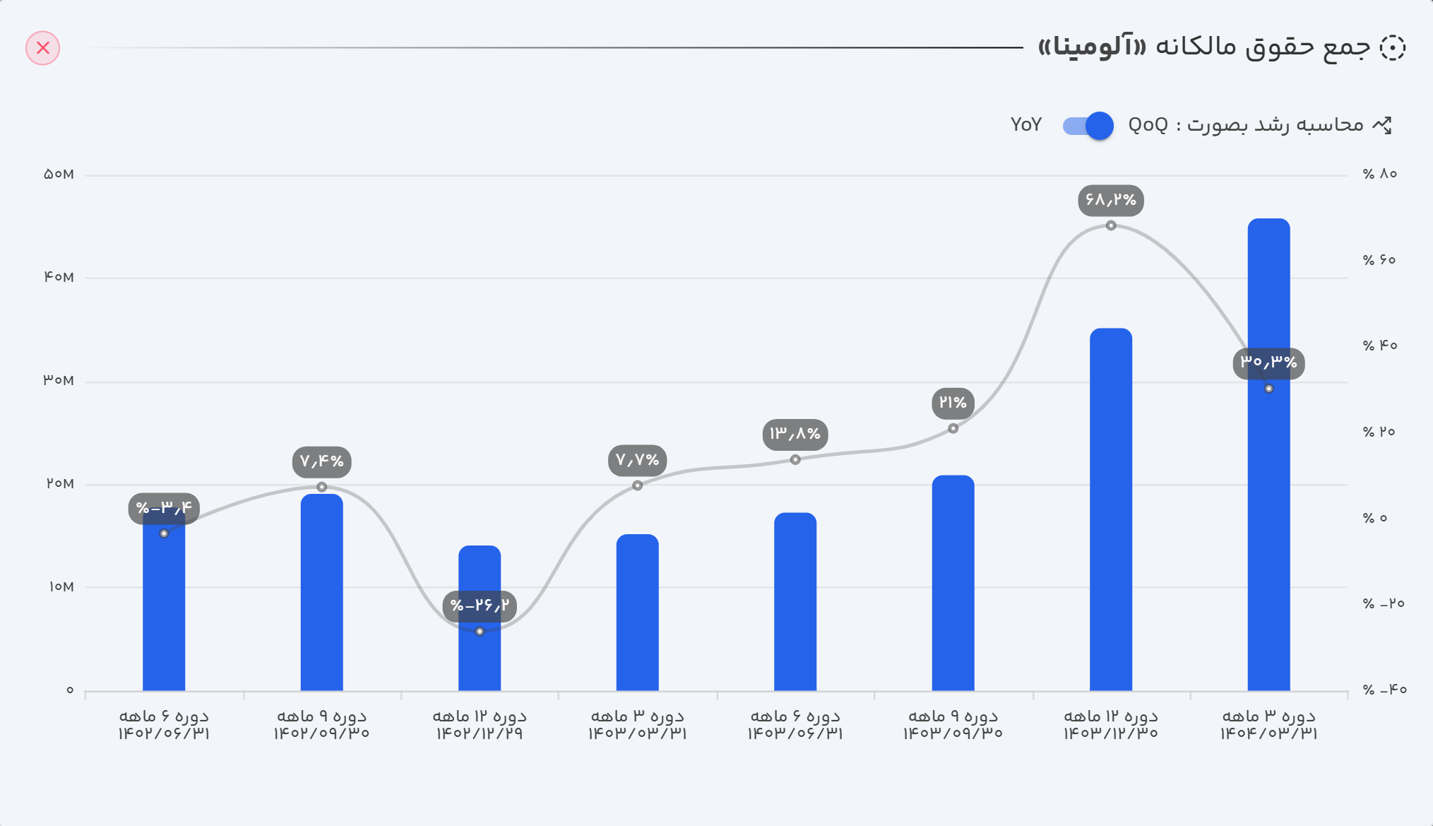 - حقوق مالکانه: رشد سود انباشته، منجر به افزایش ۳۰ درصدی حقوق مالکانه و تقویت ساختار سرمایه شرکت شده است.