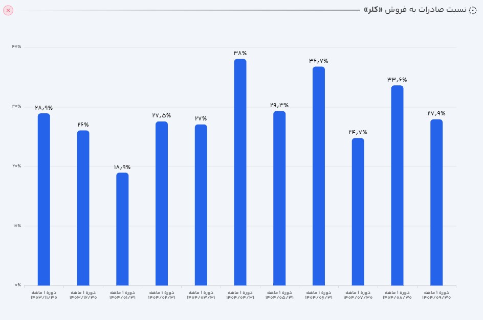 بر اساس گزارش فروش شرکت در پایان آذرماه 1404 شرکت کلر پارس موفق شد در این ماه 50.2 میلیاد تومان معادل 28 درصد از کل مبلغ فروش خود را از محل صادرات محقق کند.