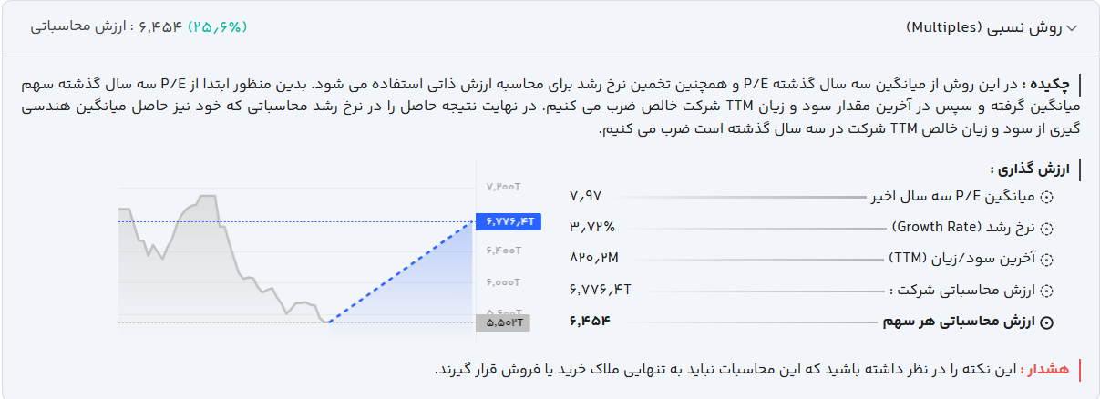 با توجه به تاریخچه سودآوری و نرخ رشد فصلی ۳.۷۲ درصدی، این مدل ارزشگذاری پتانسیل رسیدن ارزش بازار شرکت به ۶۷۷.۶ هزار میلیارد تومان (همت) را تخمین میزند.