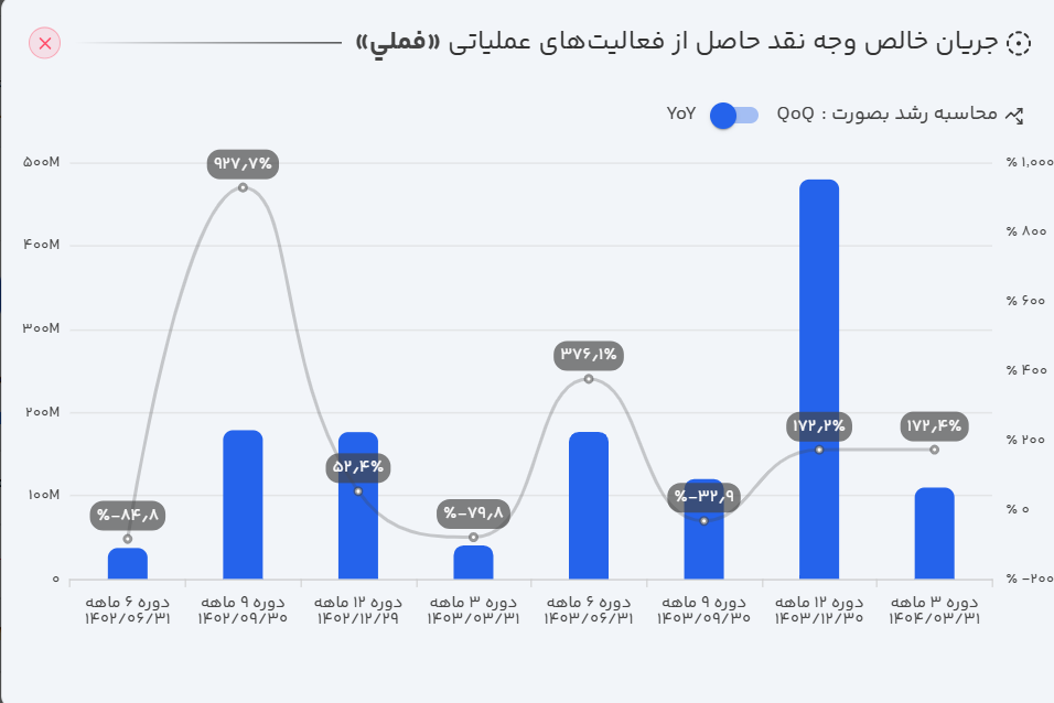 فملی در سه ماهه ابتدایی سال مالی خود موفق شد ۱۰.۹ هزار میلیارد تومان وجه نقد عملیاتی تولید کند که معادل ۶۳ درصد از درآمد عملیاتی آن دوره است. با این حال، سهم قابل توجه ۹ هزار میلیارد تومانی از این مبلغ صرف خرید داراییهای ثابت (سرمایهگذاری) برای تداوم و توسعه تولید شد. در نهایت، شرکت با دریافت ۲ هزار میلیارد تومان تسهیلات، مابقی وجه نقد را صرف پرداخت بدهیهای خود کرد و در انتهای دوره پول نقد مازادی باقی نماند.
