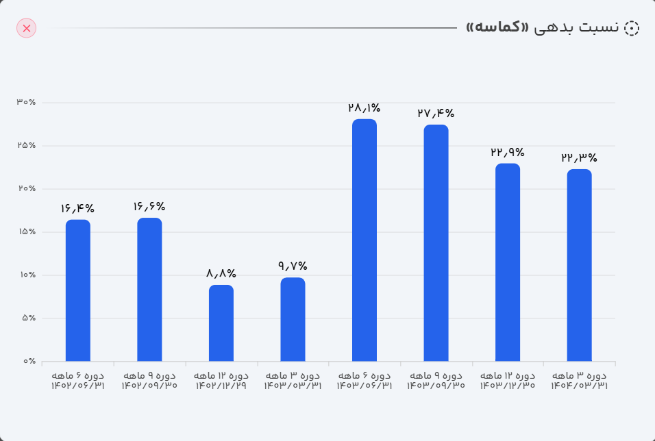 نسبت بدهی (۲۲٪): با توجه به ضعف شرکت در تولید وجه نقد عملیاتی، این احتمال وجود دارد که برای جبران کسری نقدینگی، به افزایش بدهیهای خود روی آورد. این موضوع میتواند ریسک مالی شرکت را در مواجهه با بحرانهای اقتصادی افزایش دهد.