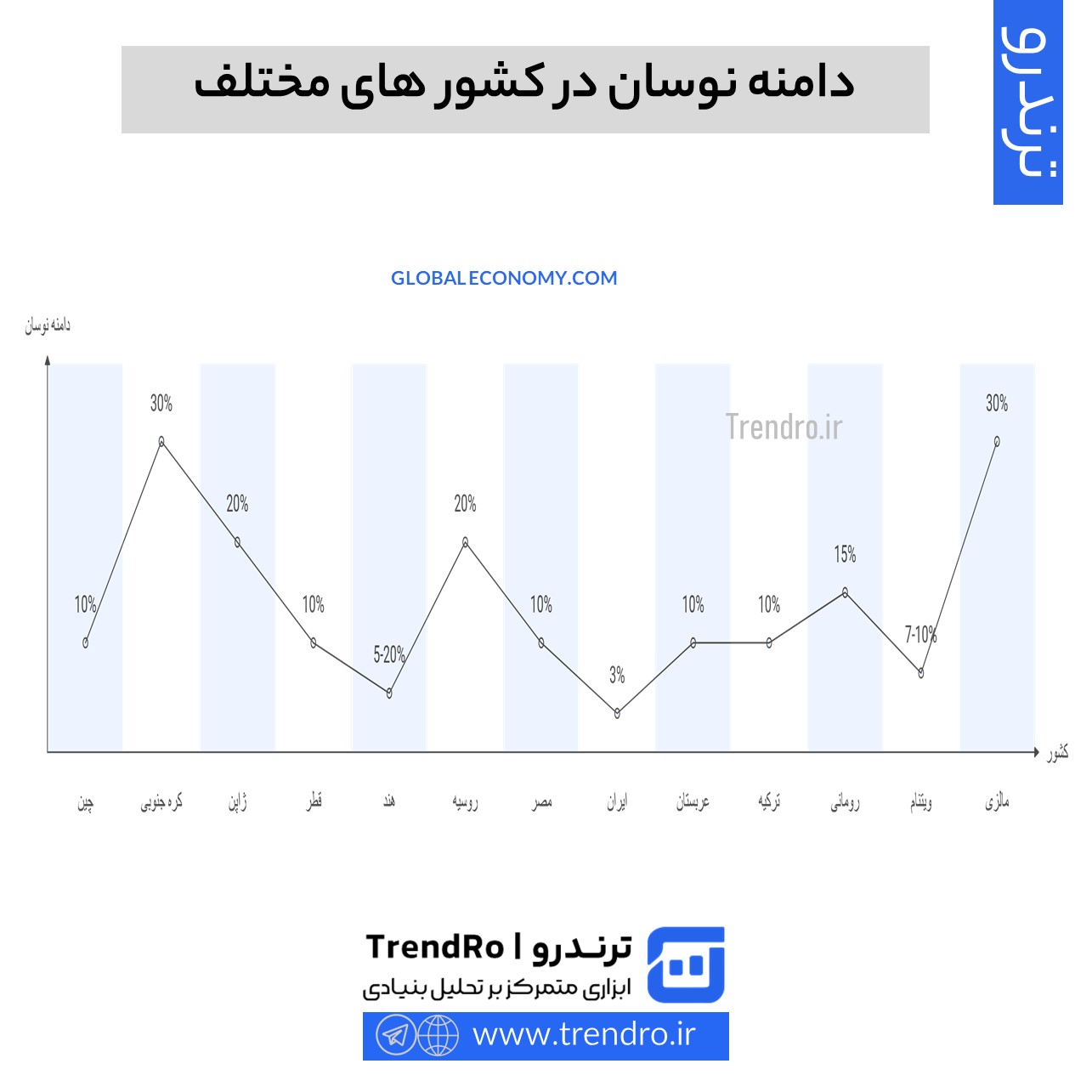 دامنه نوسان بازار سهام در کشورهای مختلف