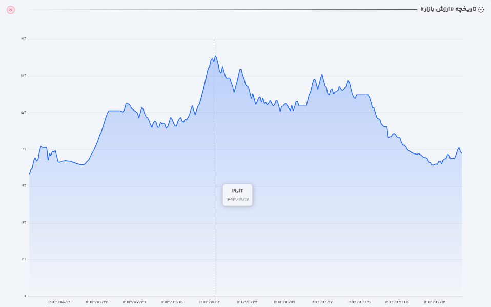 پس از ثبت سقف تاریخی ارزش بازار در ۱.۹۳ هزار میلیارد تومان، سهام چند بار در اردیبهشت ۱۴۰۲ و در سال ۱۴۰۳ به این سطح نزدیک شد، ولی موفق به شکست آن نشد. اکنون سهم مجدداً در حال نزدیک شدن به این سطح است که با توجه به گزارشهای مطلوب و روند خوب فروش و درآمدزایی، به نظر میرسد شرکت میتواند به ارزش ۲.۵ هزار میلیارد تومانی دست یابد.